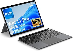 2-in-1 Tablet core N100, 14″ Win 11 Pro Touchscreen PC 16GB LPDDR5 512GB SSD,1920×1200 Touchscreen,MS Office 365,WiFi-6,Type-C,HDMI, Dual Camera, Quad-Core Processor